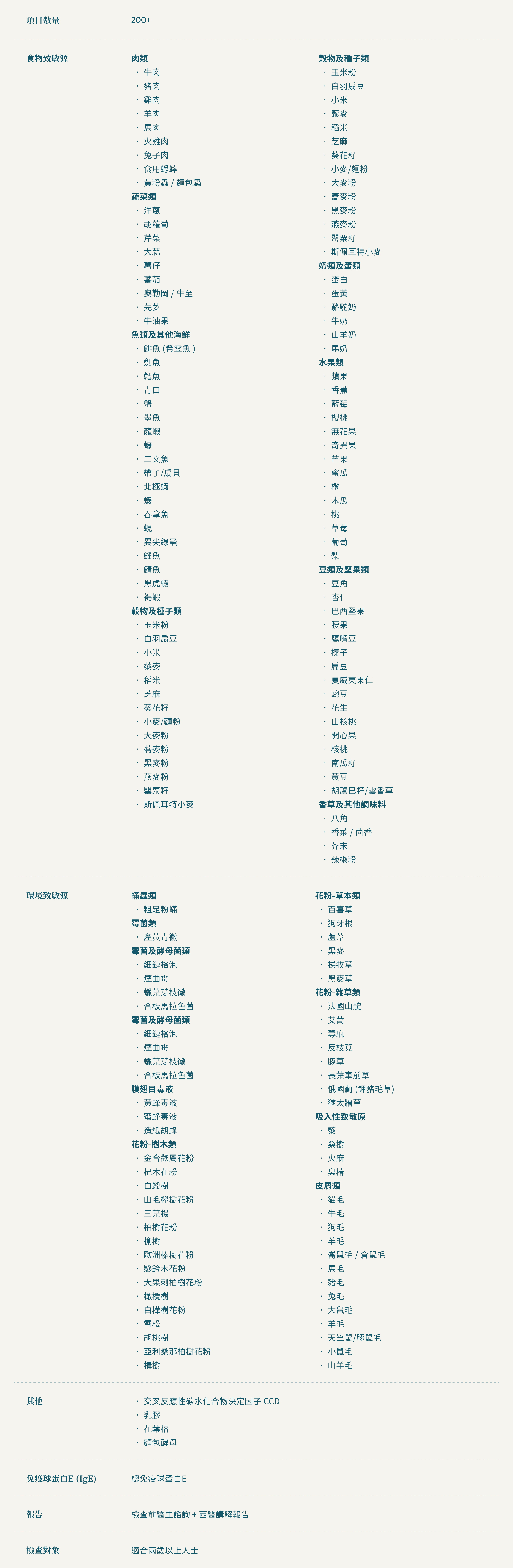 ALEX2新一代免疫球蛋白E (IgE)過敏測試是目前最先進的過敏測試技術,通過抽血檢測多達300種完整過敏原和分子過敏原混合物。這項測試能精確評估個體的過敏致敏反應,幫助醫生更好地了解病人的過敏情況。